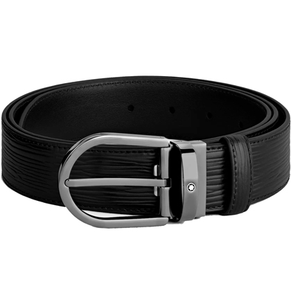 Черный кожаный ремень с подковообразной пряжкой 35мм от магазина премиальных ручек Premium Pens в Волгодонске.