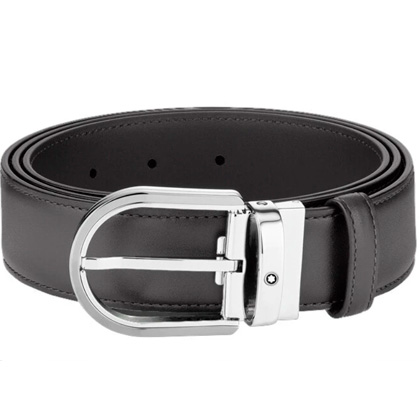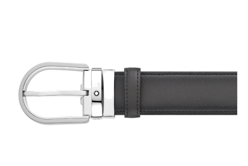 Кожаный ремень с пряжкой в форме подковы серого цвета 35 мм от магазина премиальных ручек Premium Pens в Волгодонске.